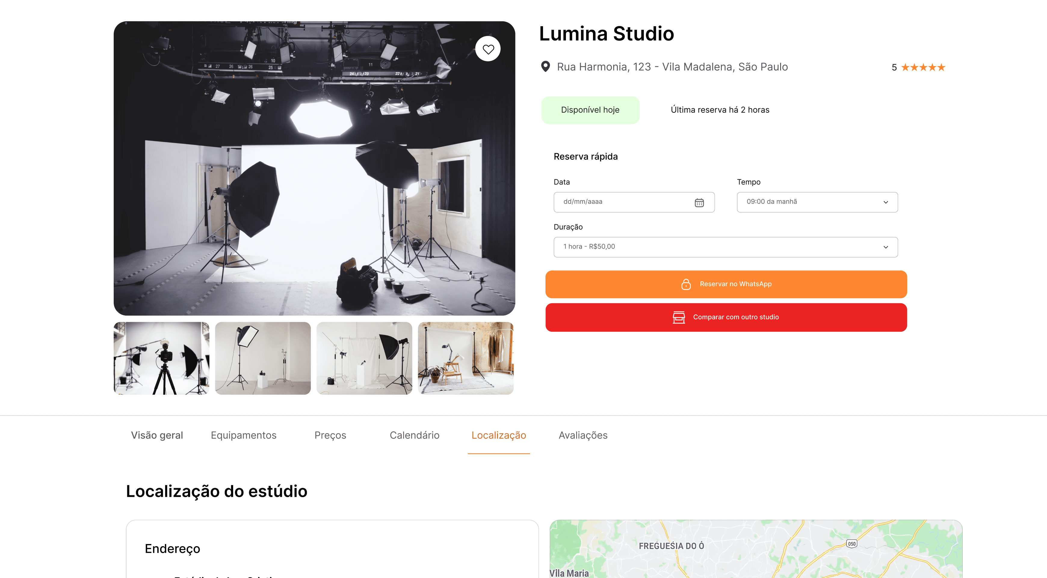 Visualize todos os estúdios e espaços cadastrados no mapa e descubra os mais próximos de você.